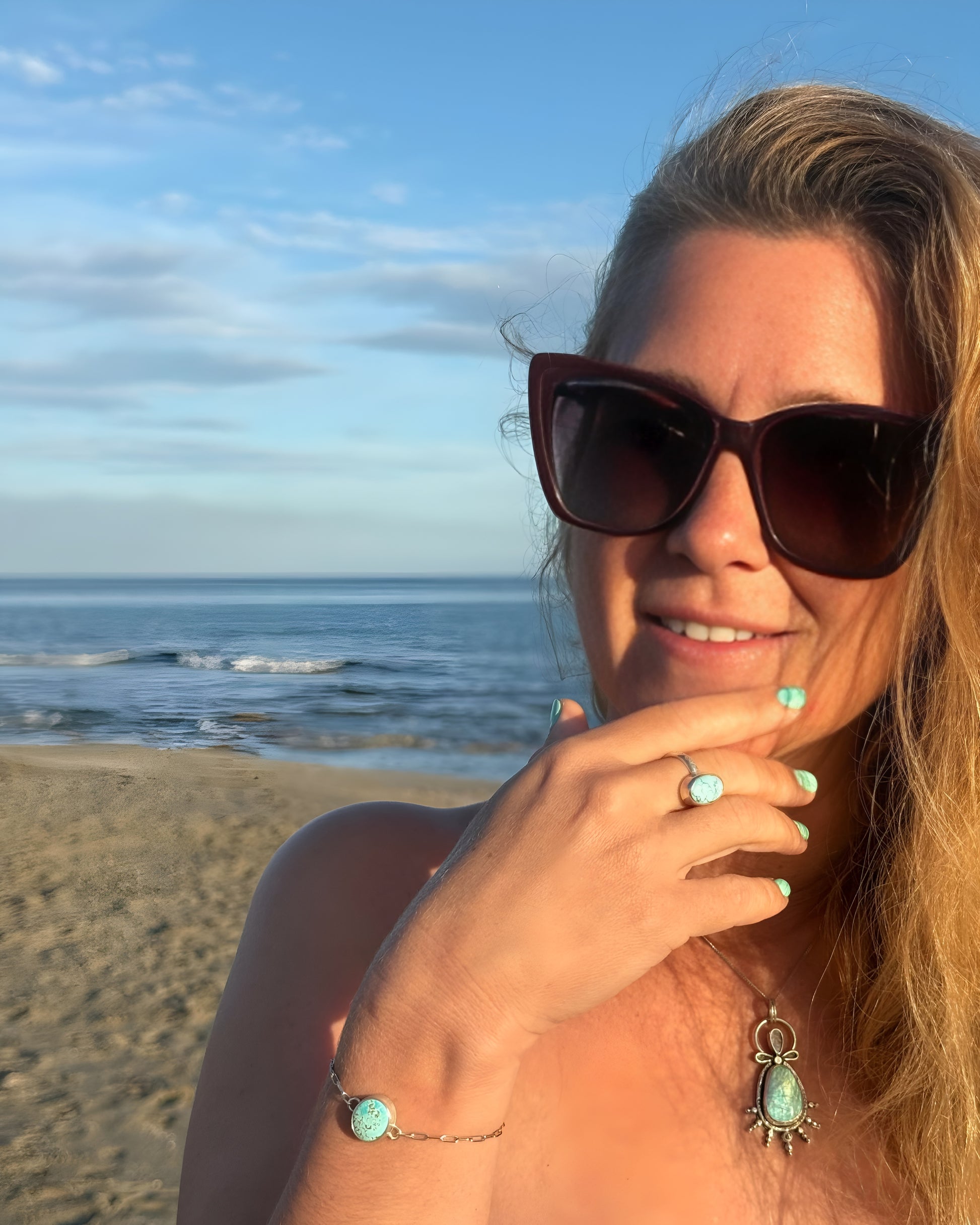 Ring featuring a natural #8 turquoise in a soft baby blue shade.