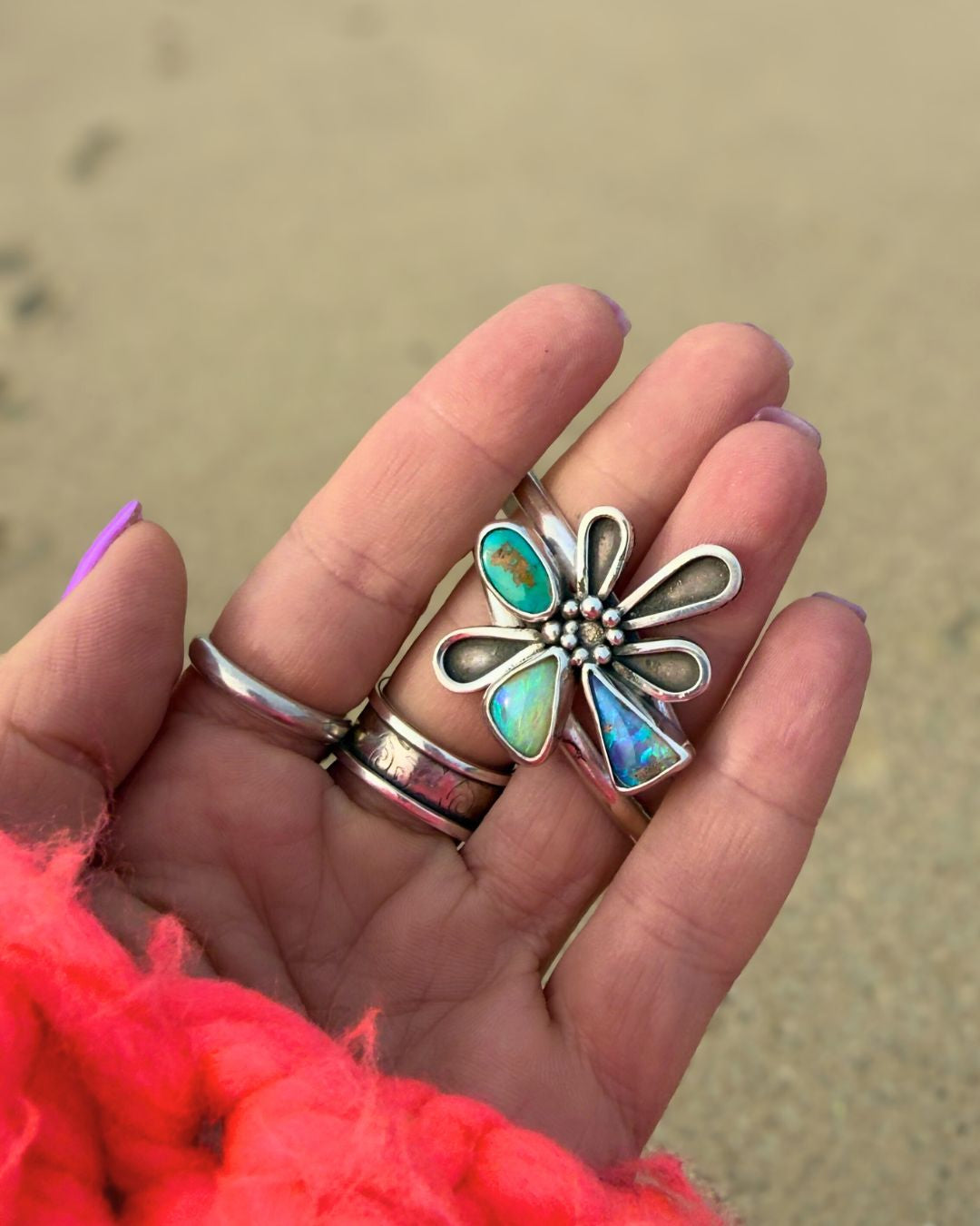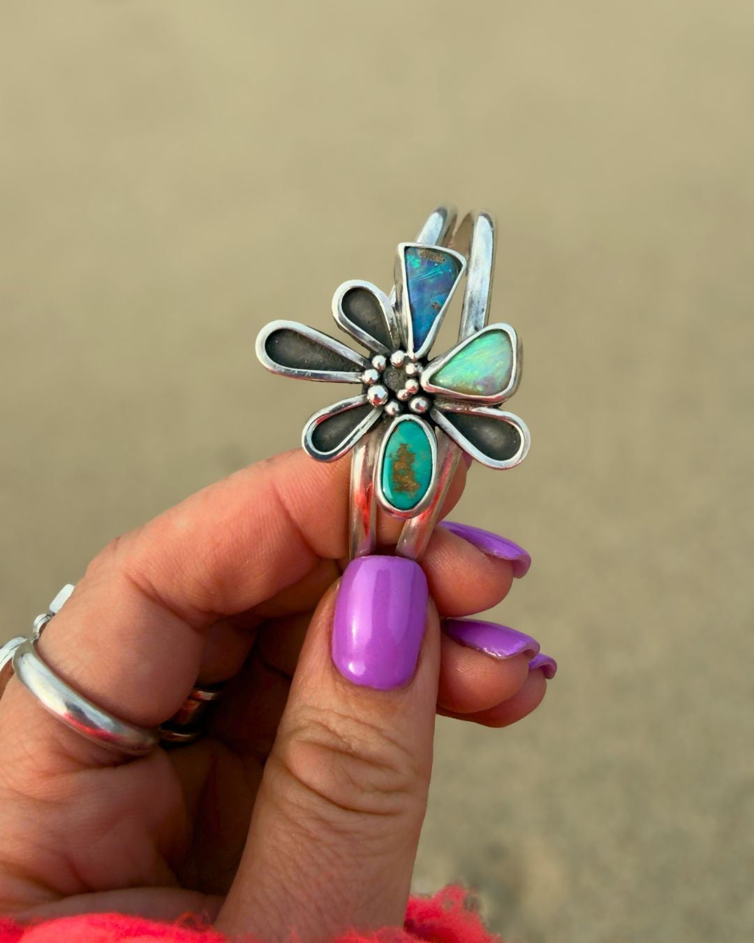 Material: 925 sterling silver, Australian boulder solid opal, Australian pipe solid opal, Royston natural turquoise