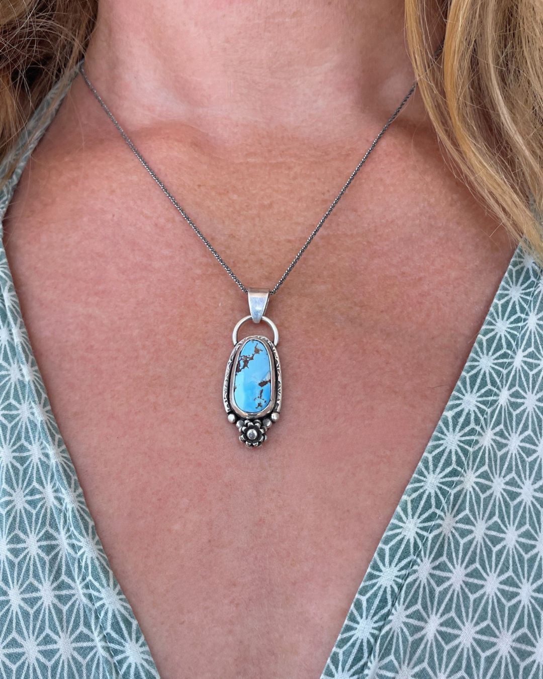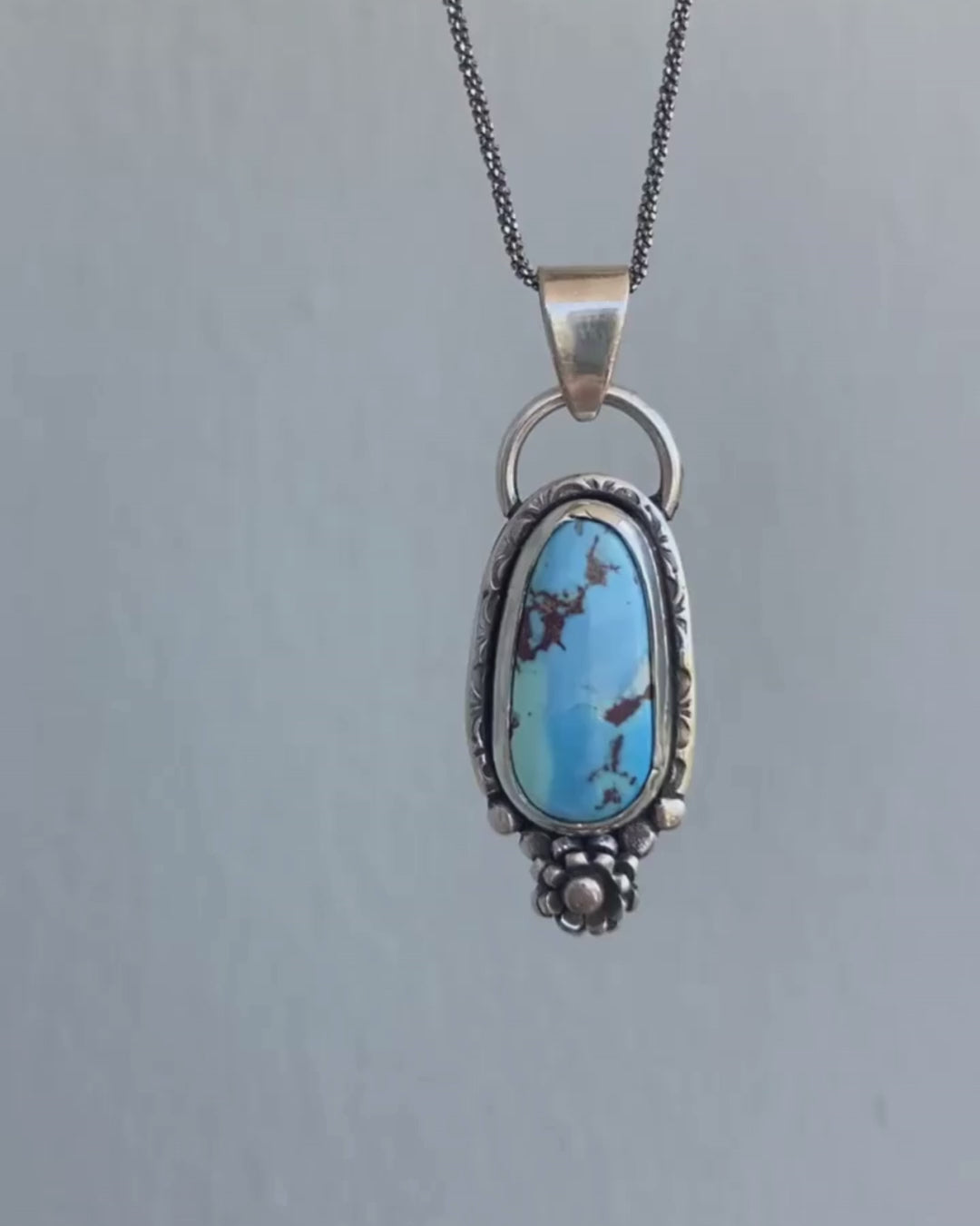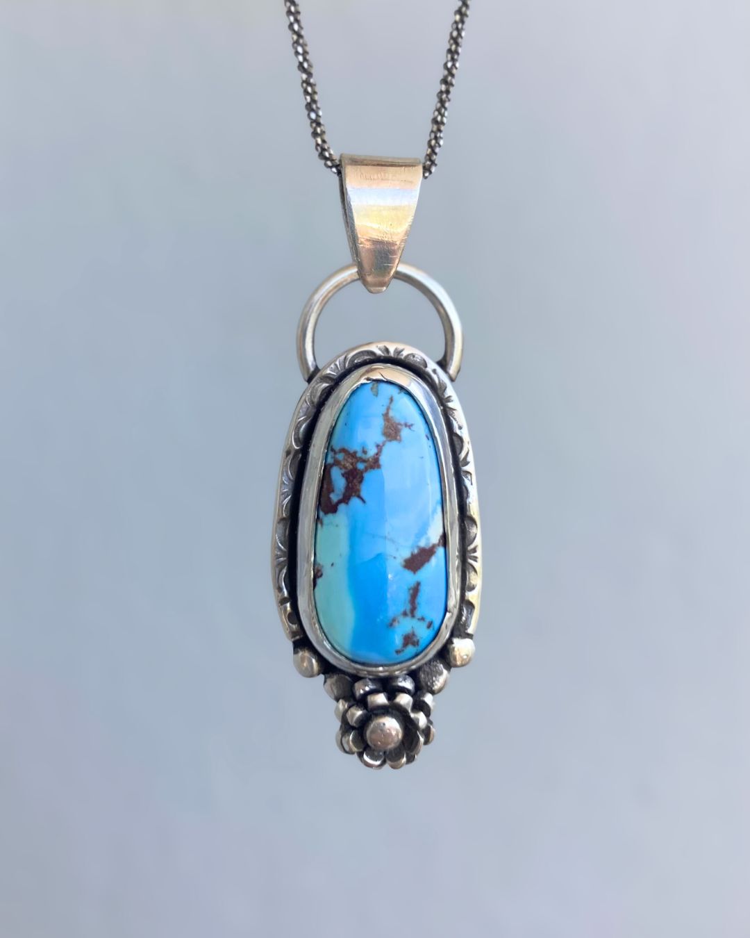 A rare beauty, mined only two months out of the year. The rest of the time, harsh conditions make it impossible to access. This piece is natural and completely unstabilized. It comes from the Caucasus, was cut and polished by a dear friend of mine in Nevada, and then traveled halfway around the world to join me here in Greece. :) Along its journey, it passed through the careful, loving hands of turquoise enthusiasts and collectors.
