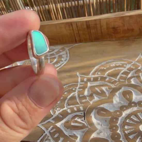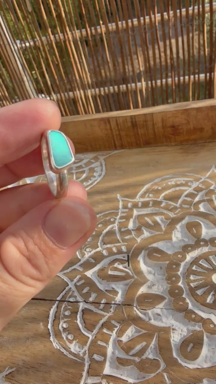 Elegant, minimalist ring featuring a mint green boulder opal.