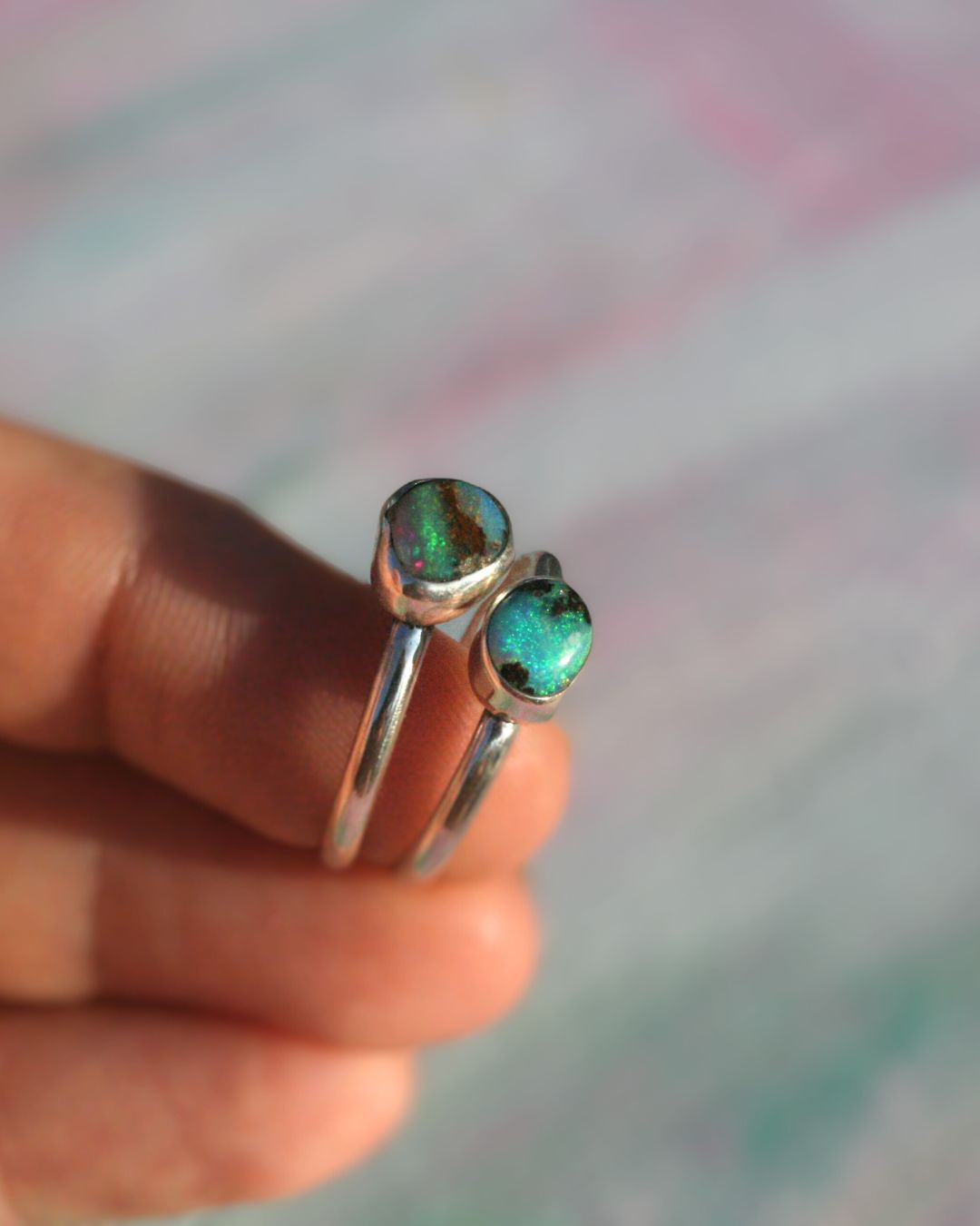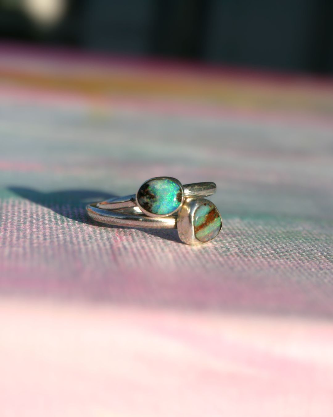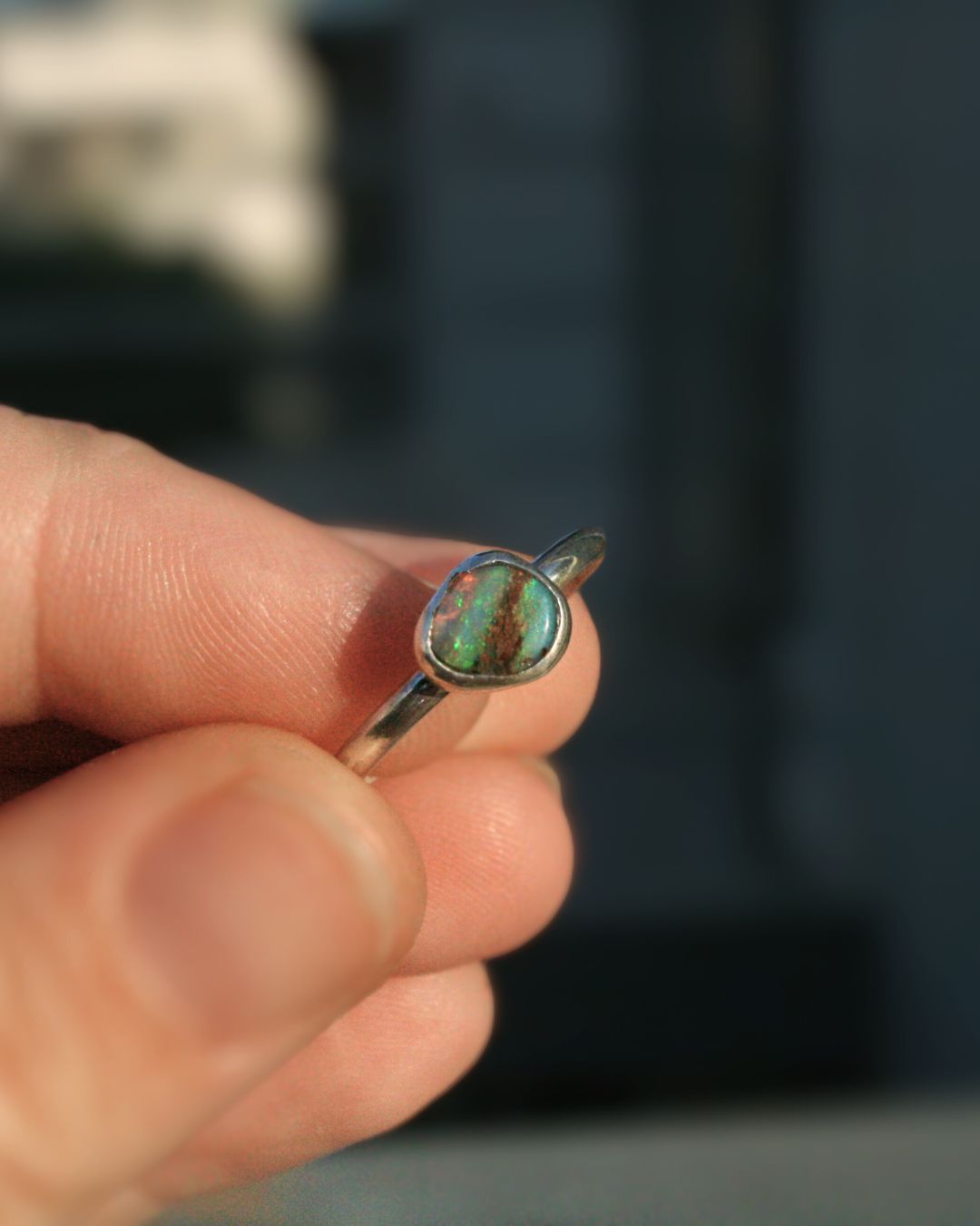 This beauty features an ethically sourced solid opal, hand collected and cut by a super talented young couple from Queensland, Australia.