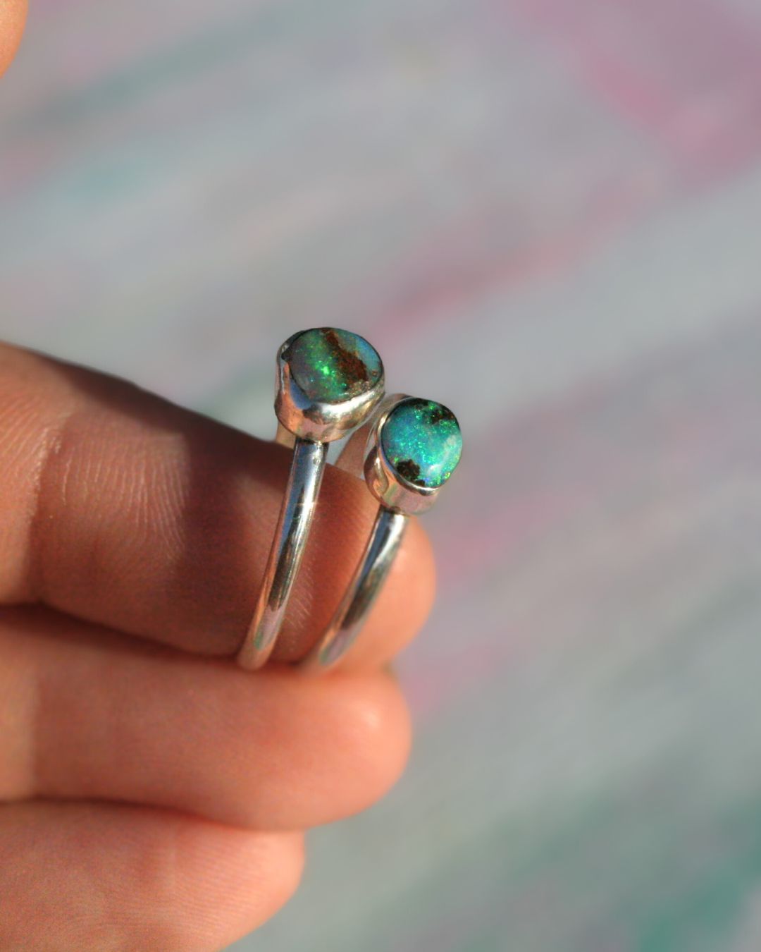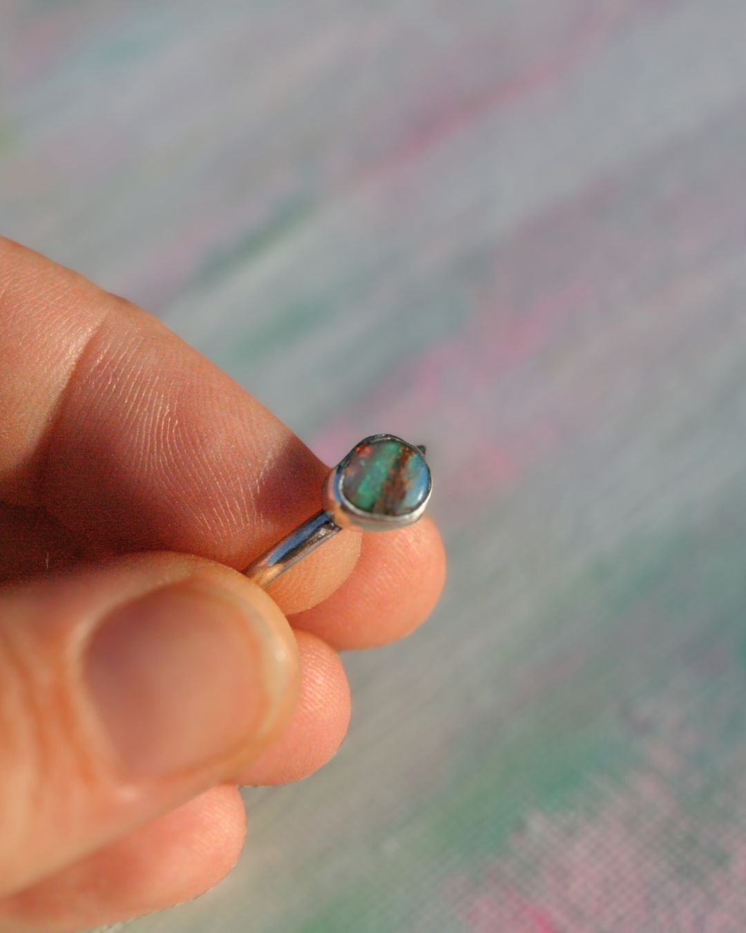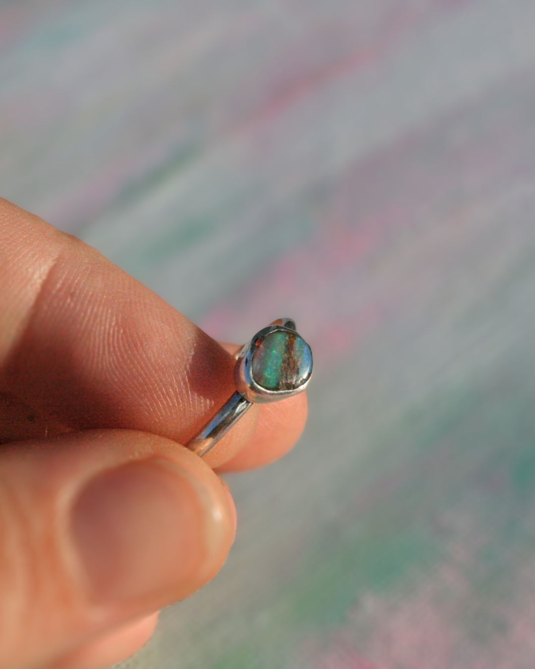 This beauty features an ethically sourced solid opal, hand collected and cut by a super talented young couple from Queensland, Australia.