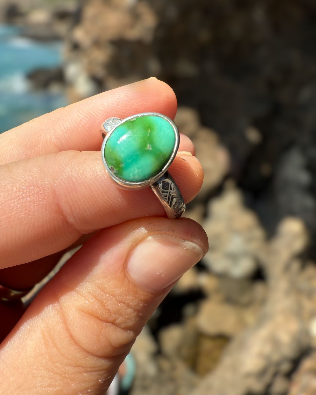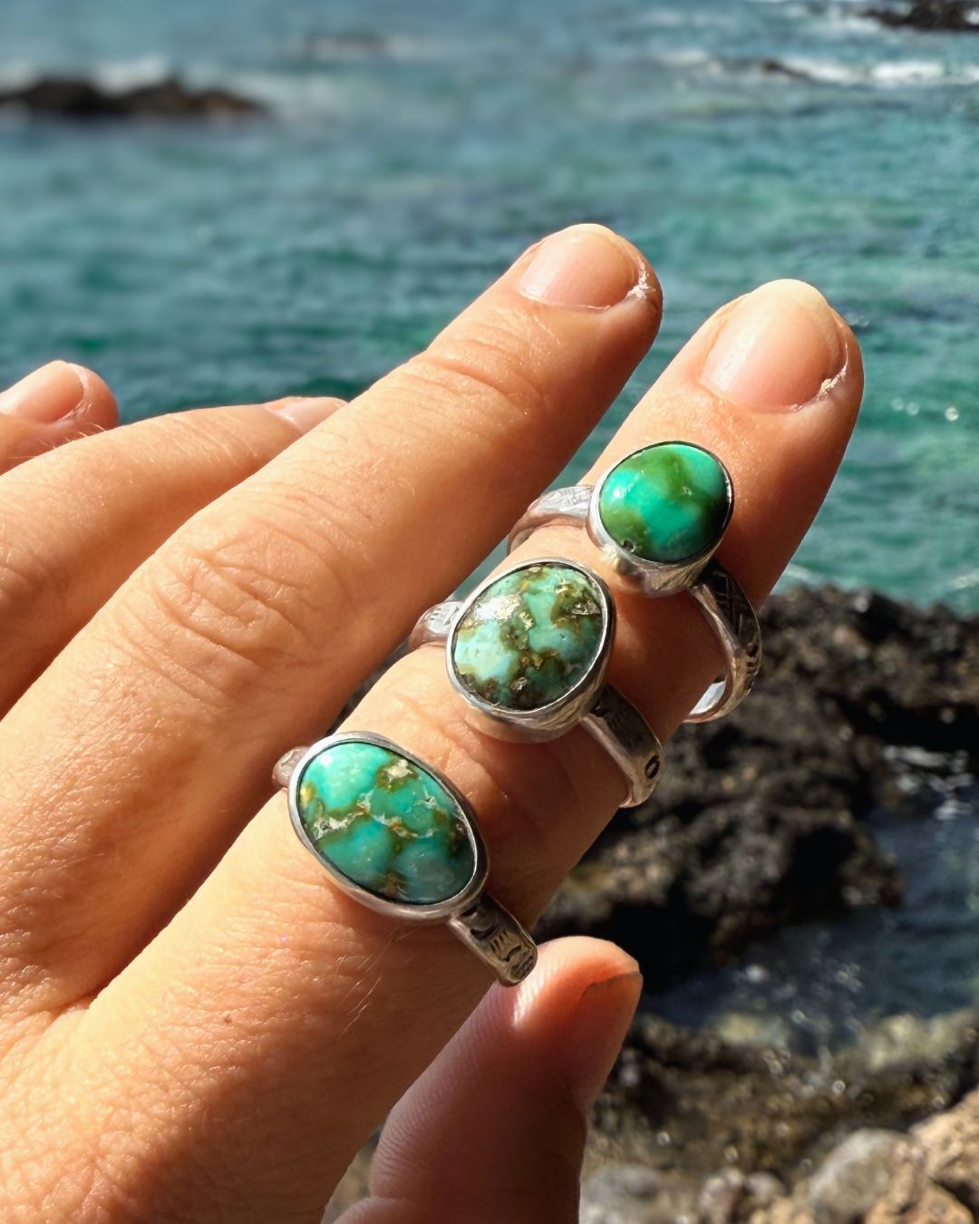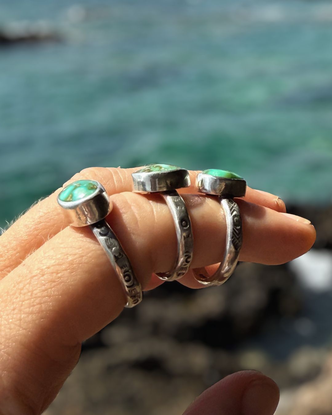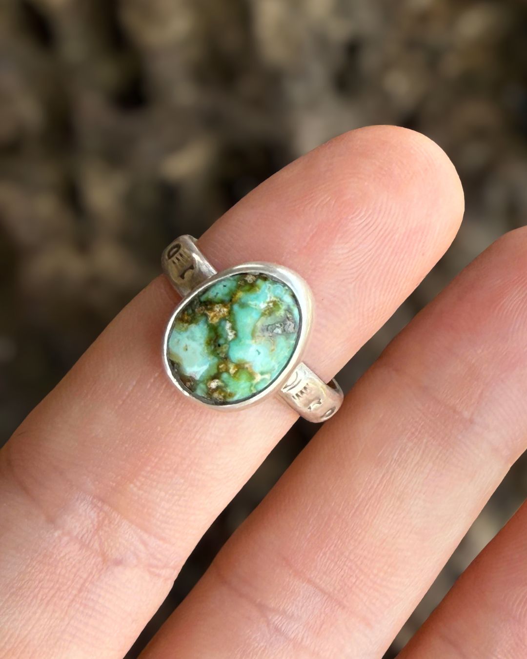 Another turquoise love… and actually my very first ring in true American style :) What makes it so special is the stamping on a bold, half-round band.