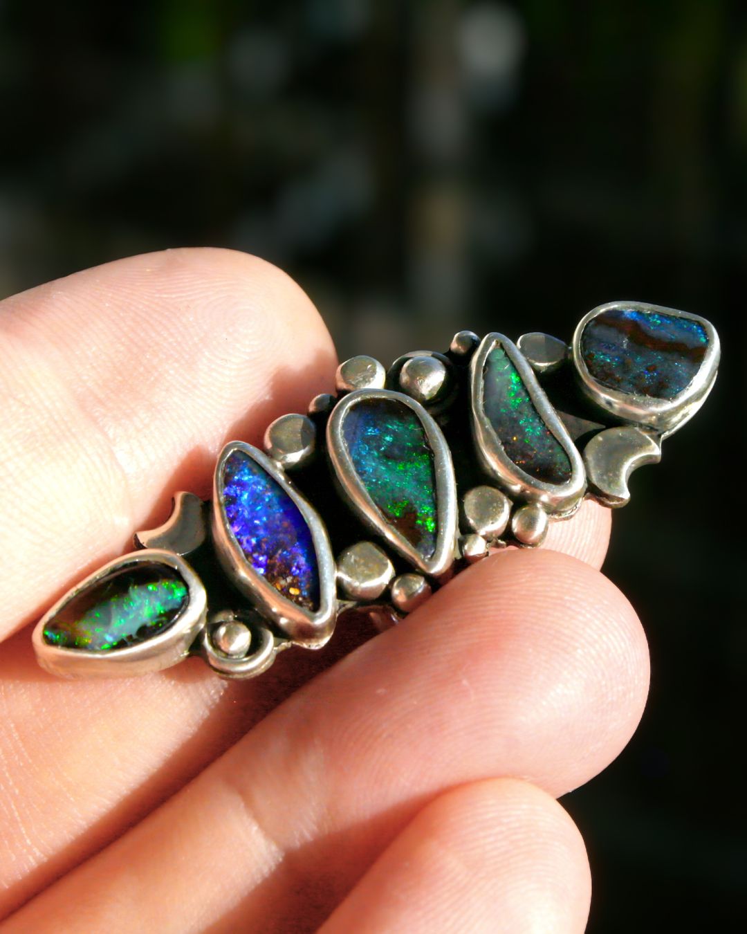 Material: sterling silver, natural Australian boulder opals - blue, green, violet