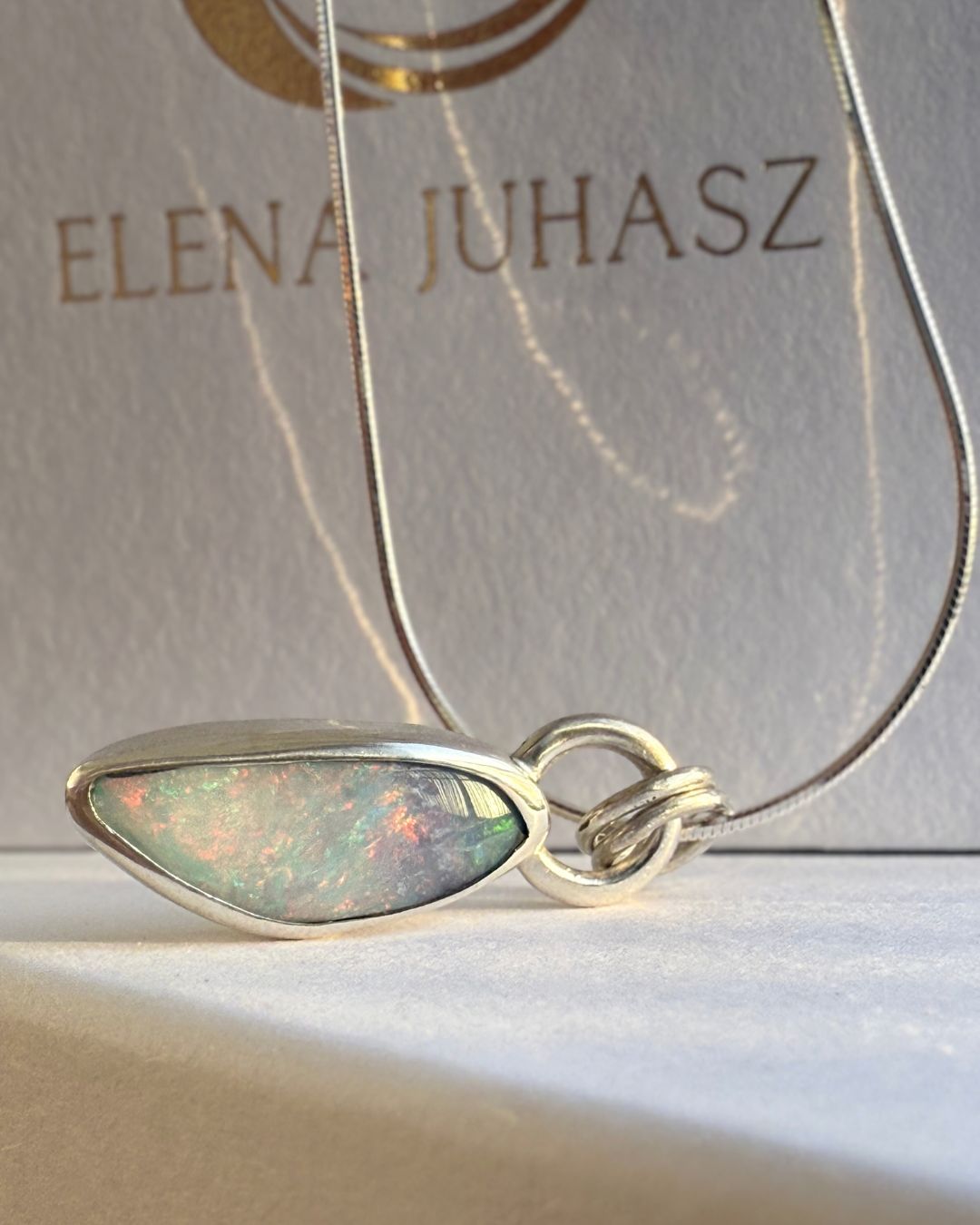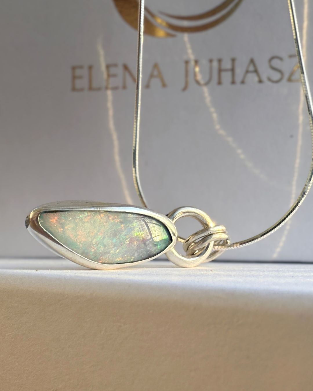 This necklace is fully dedicated to this stunning opal. In a minimalist design, it shines in the best possible way :) A boulder opal in the colors of a unicorn’s aura is something you don’t see every day. Wear it proudly as a reminder that miracles happen in everyone’s life — including yours. May it bring you joy and lightness in everything you do.