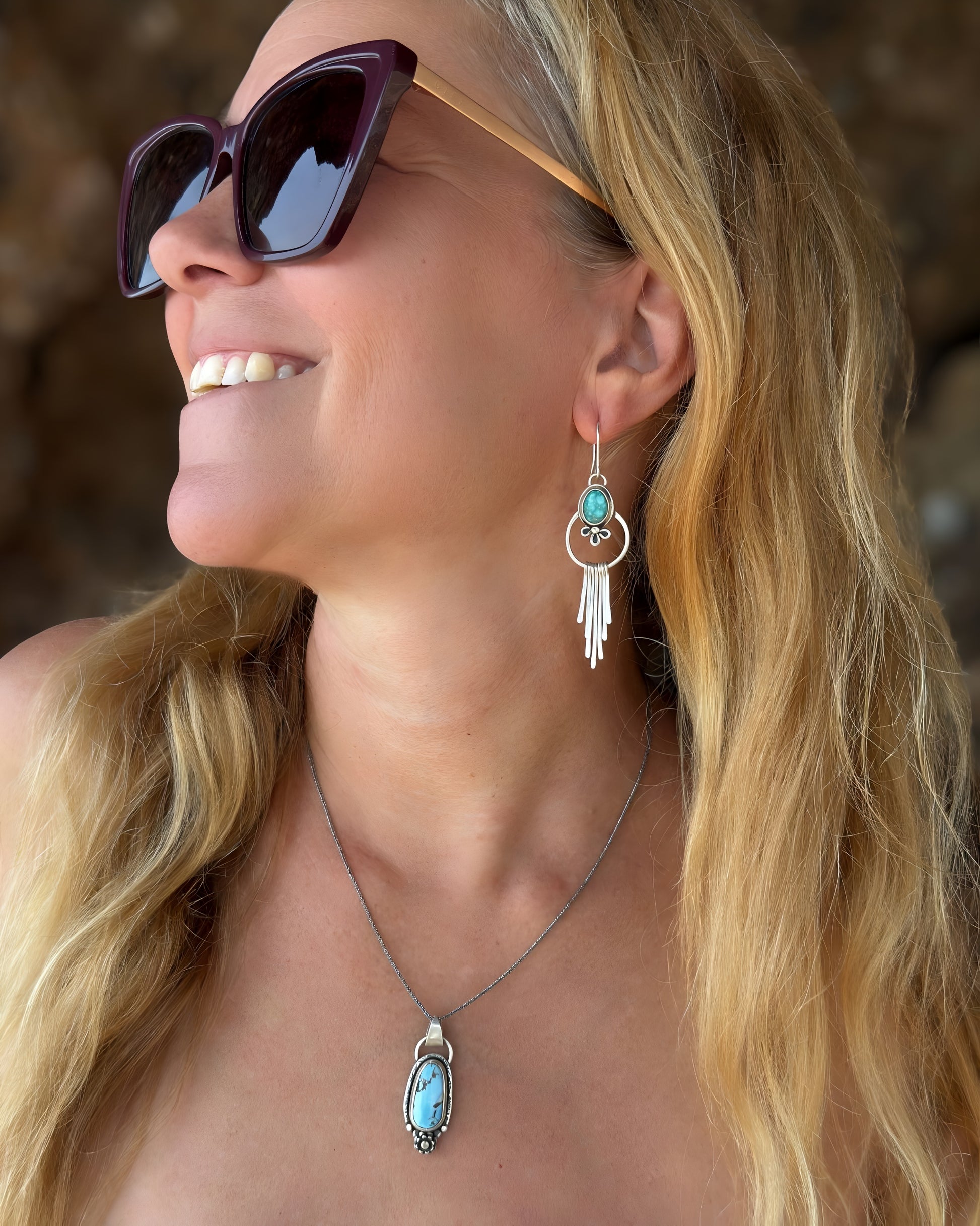 Handcrafted in 925 sterling silver, each pair is unique, carrying the timeless energy of turquoise, a stone of protection, truth, and inner peace.